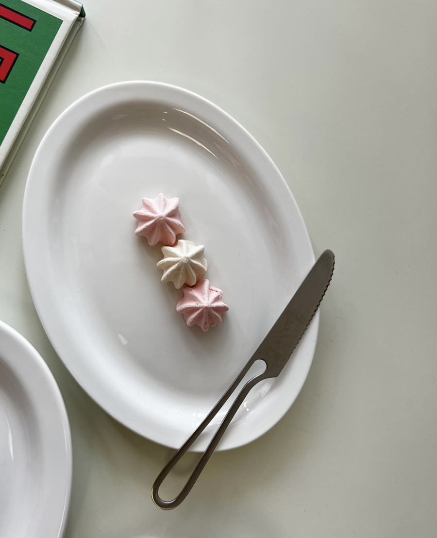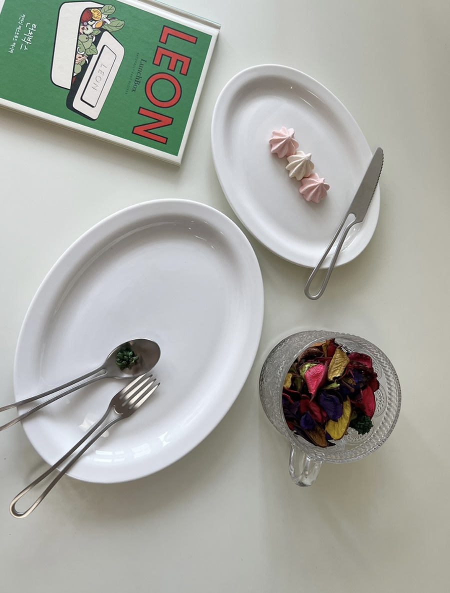 화이트 심플 오벌 타원 플레이트