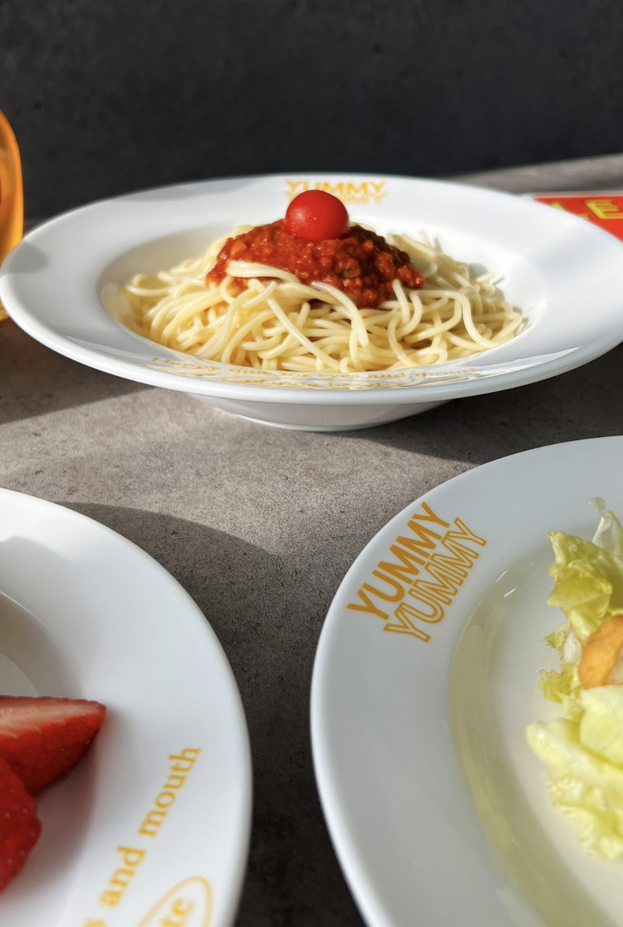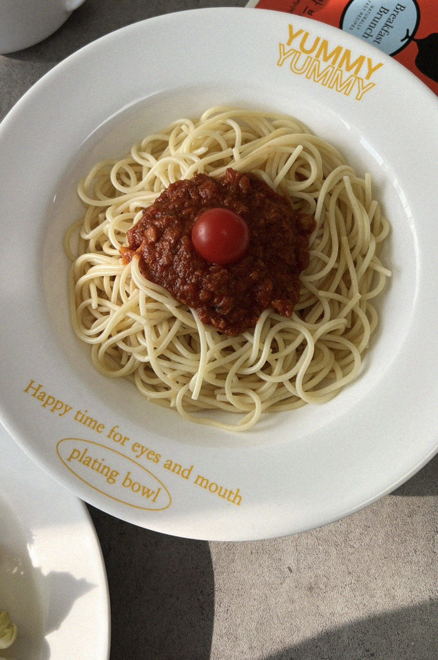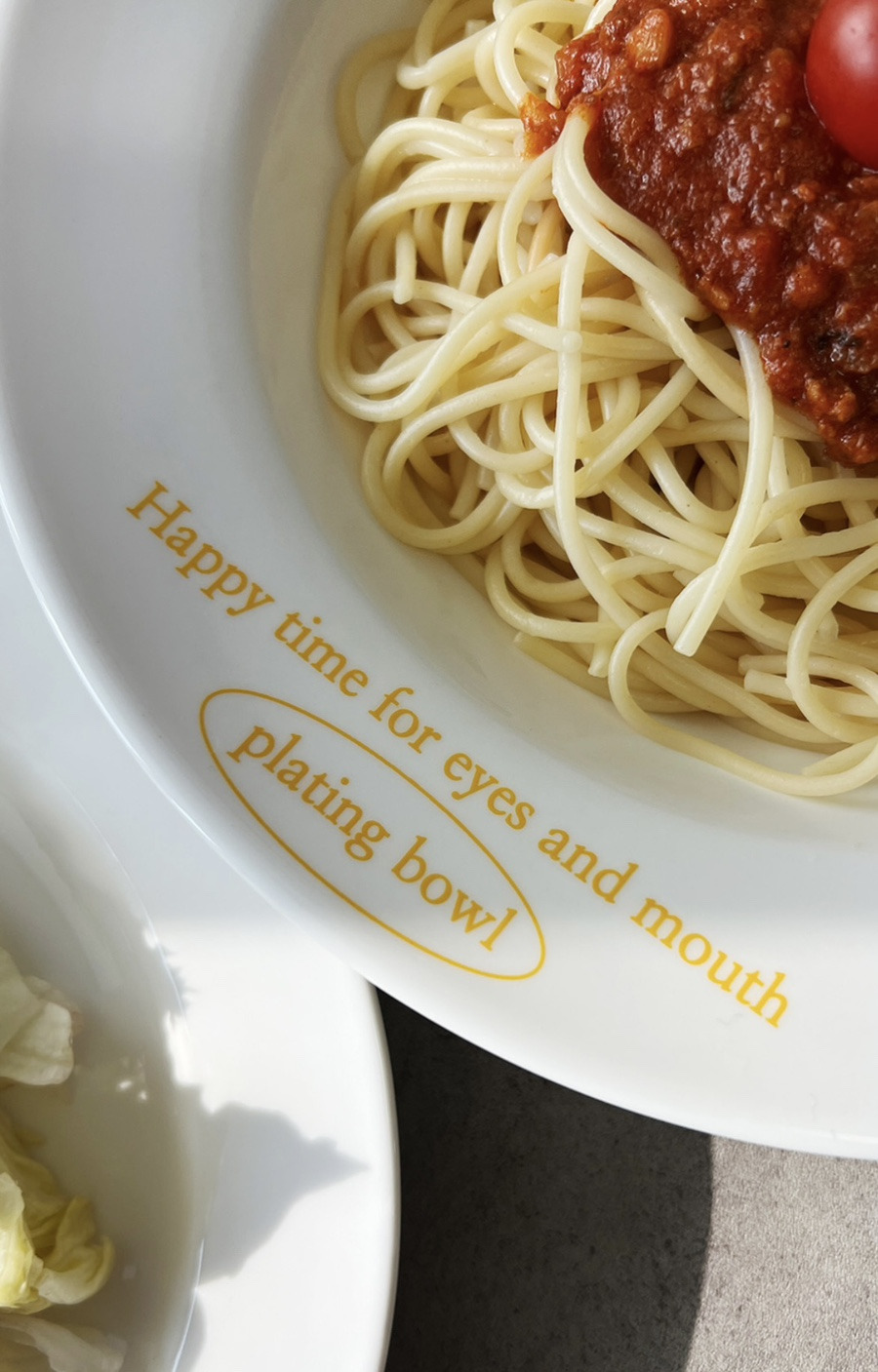 디자인된 레터링 파스타그릇이에요.