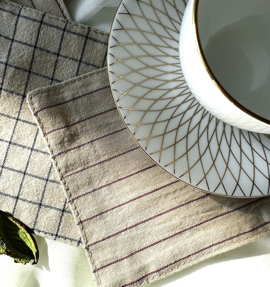 네추럴한 디자인의 선염30수린넨원단으로 제작된 코스터로 자연스러운 구김과 빈티지하고 클래식한 느낌의 원단이예요.
