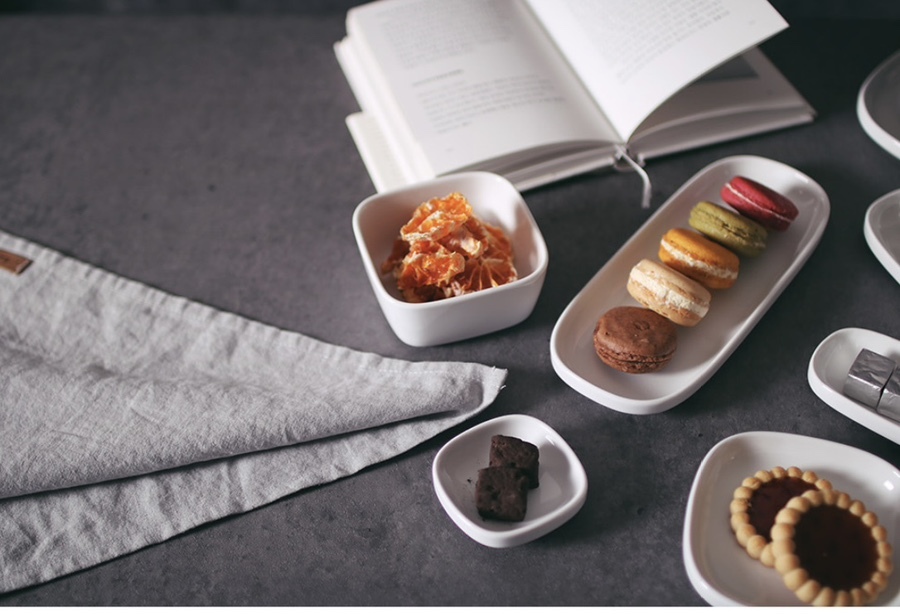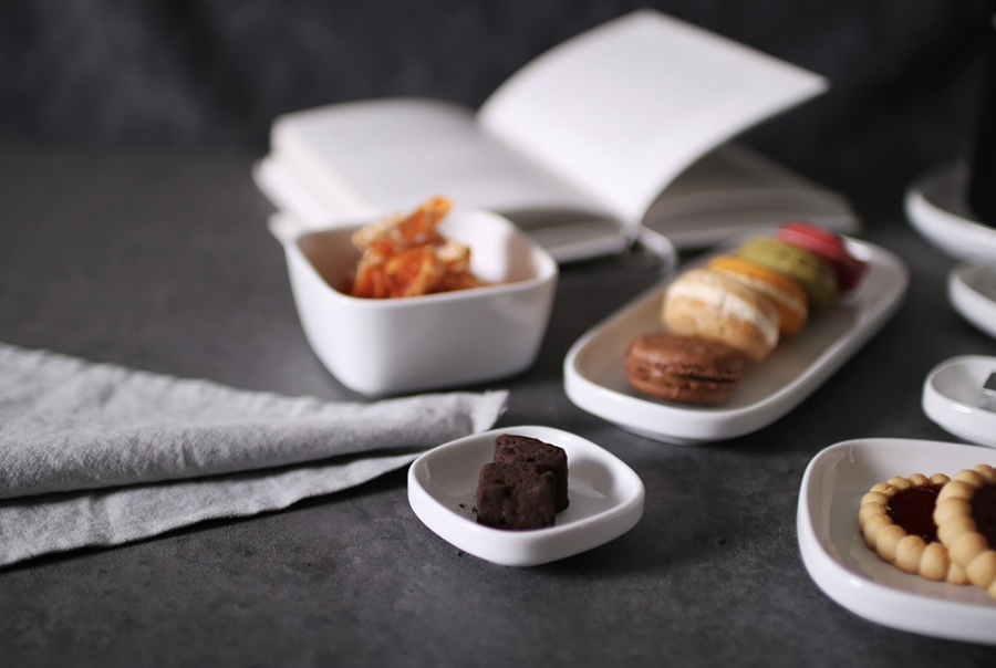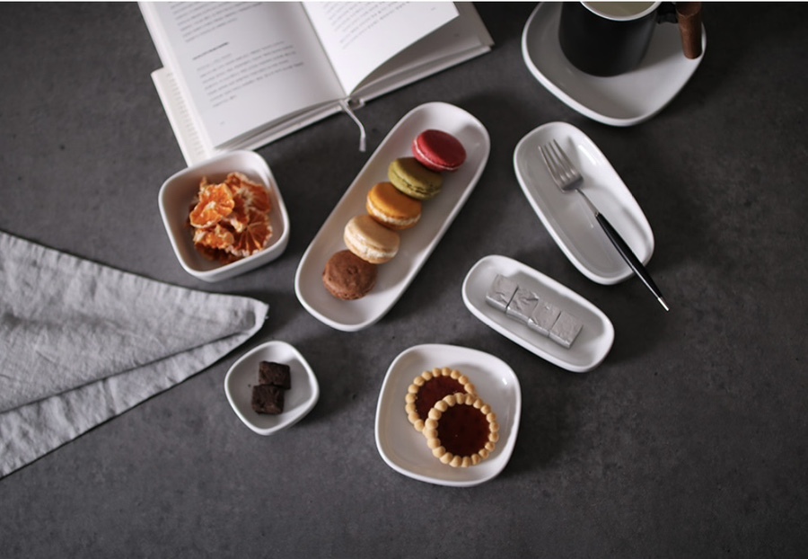 슬림한 쉐입과 도자재 재질로 어떤음식을 올려놓아도