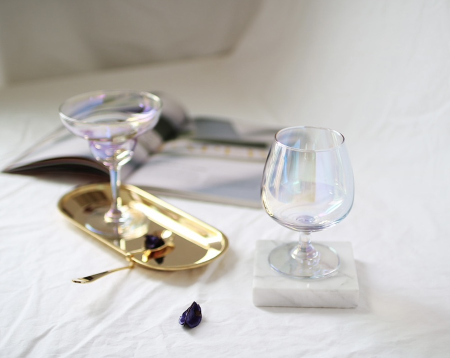 홀로그램 작업이 포인트인 유리잔으로 빛에 따라