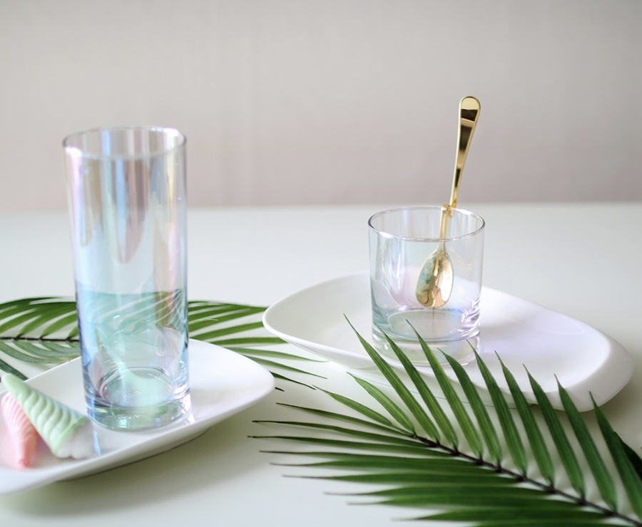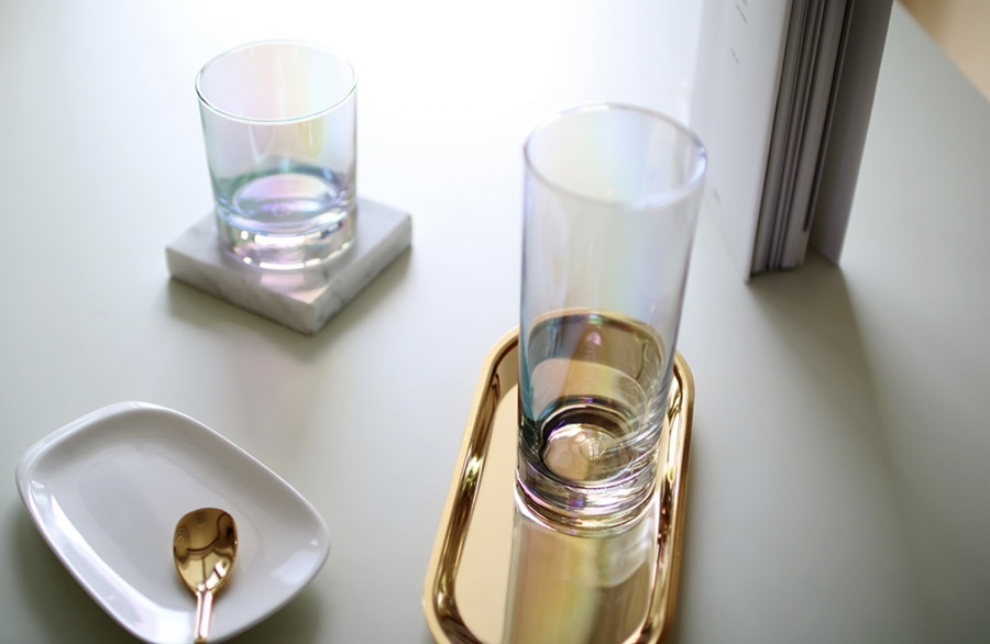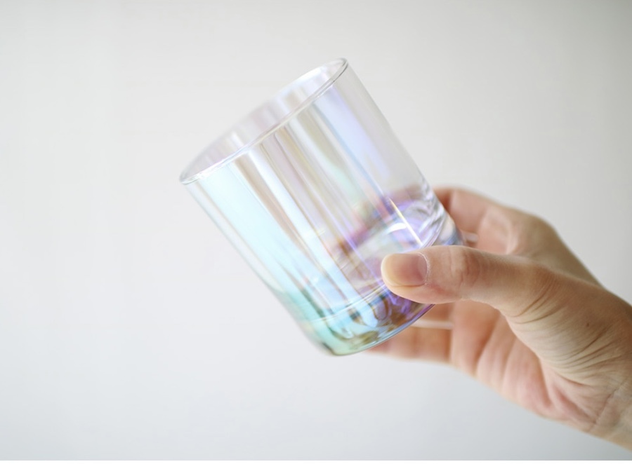 투명한 글래스잔에 은은한 홀로그램 처리되어