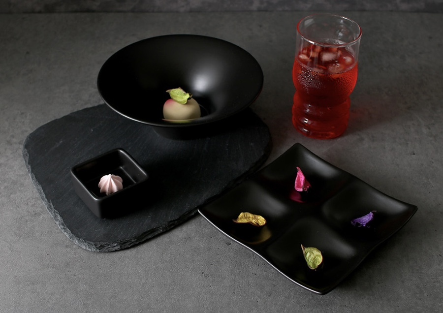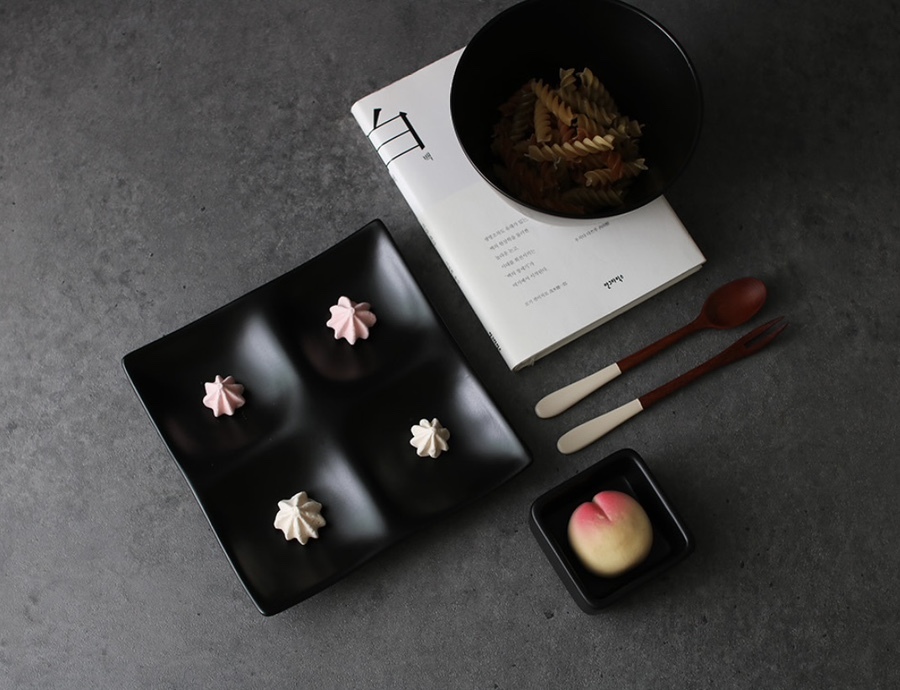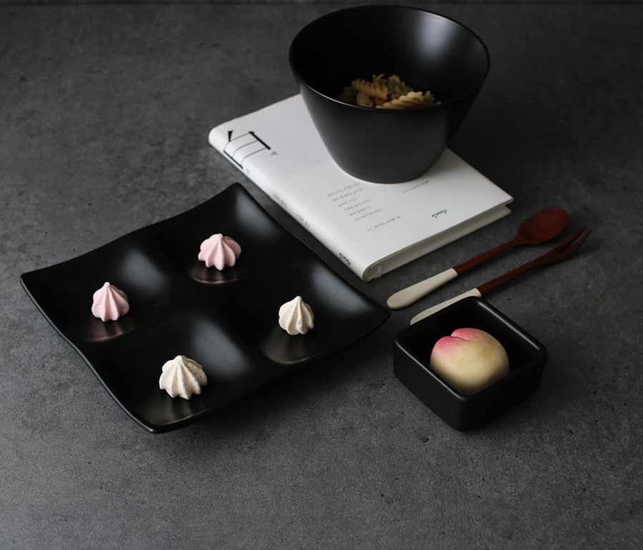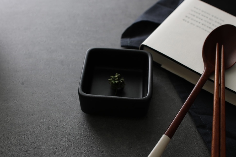 고급스러운 무광 블랙 세라믹 종지그릇으로