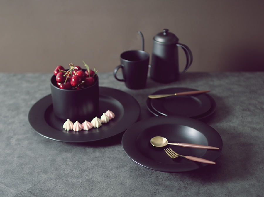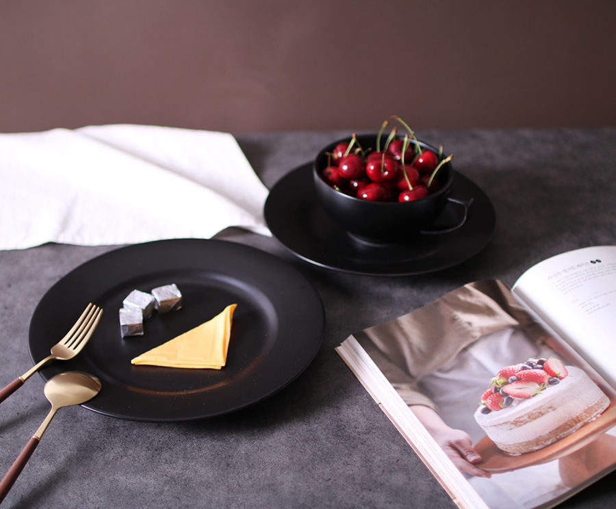 활용만점인 무광 블랙 원형접시로 스테이크나 브런치