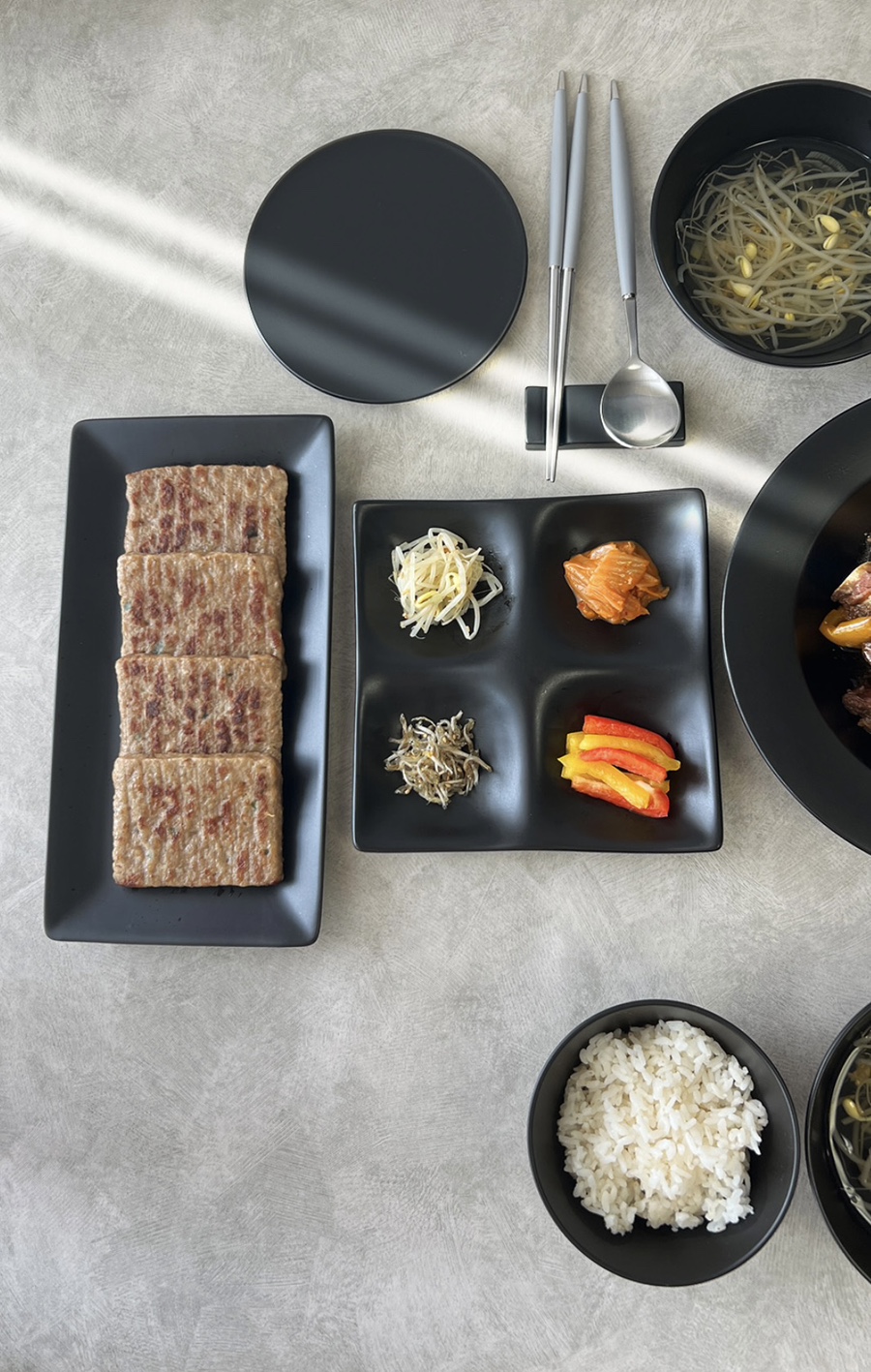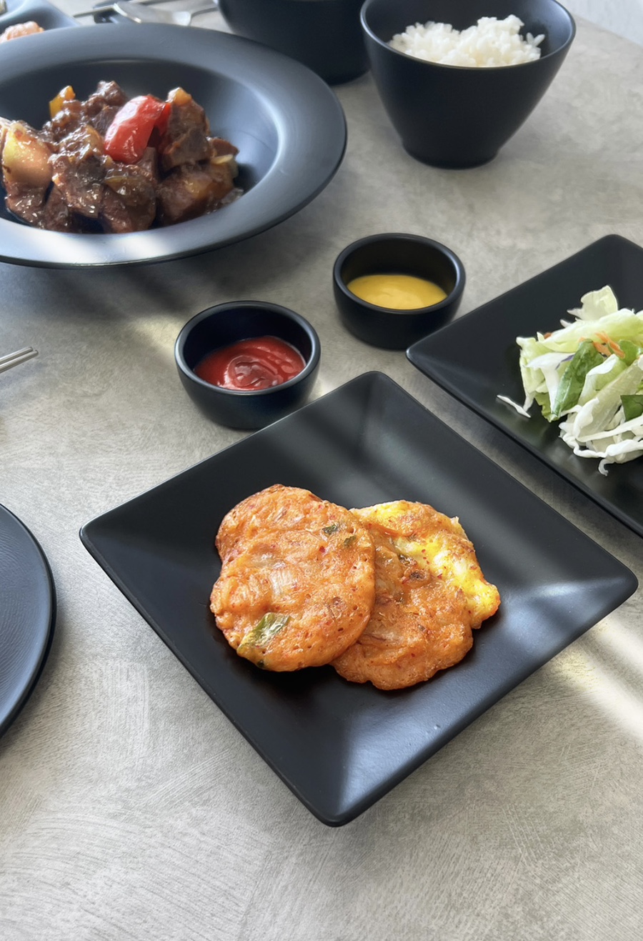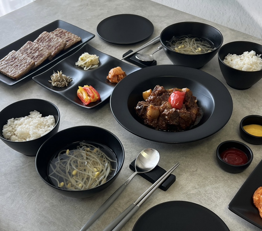 무광의 블랙 식기로 집에서도 퀄리티 높은