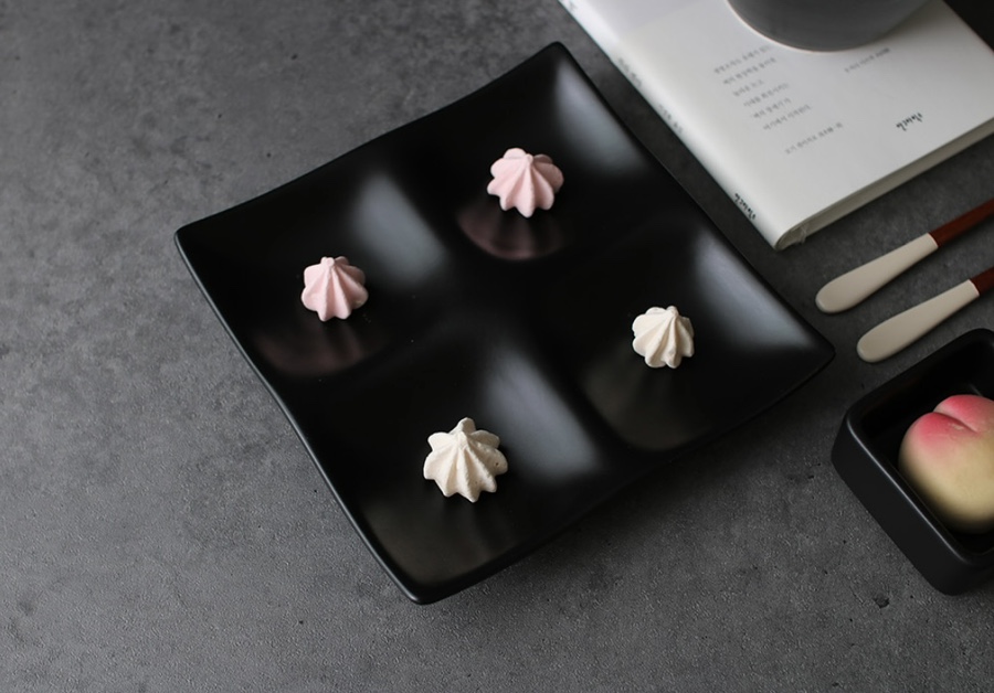 정사각 종지그릇으로 간장소스나 케찹, 마요네즈