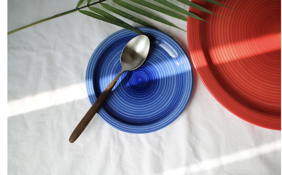 독특한 분위기를 연출해주는 원형 플레이팅접시네요.