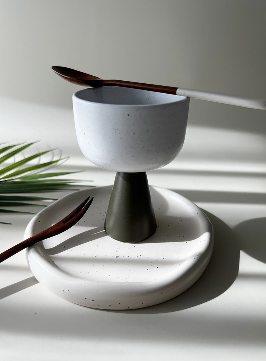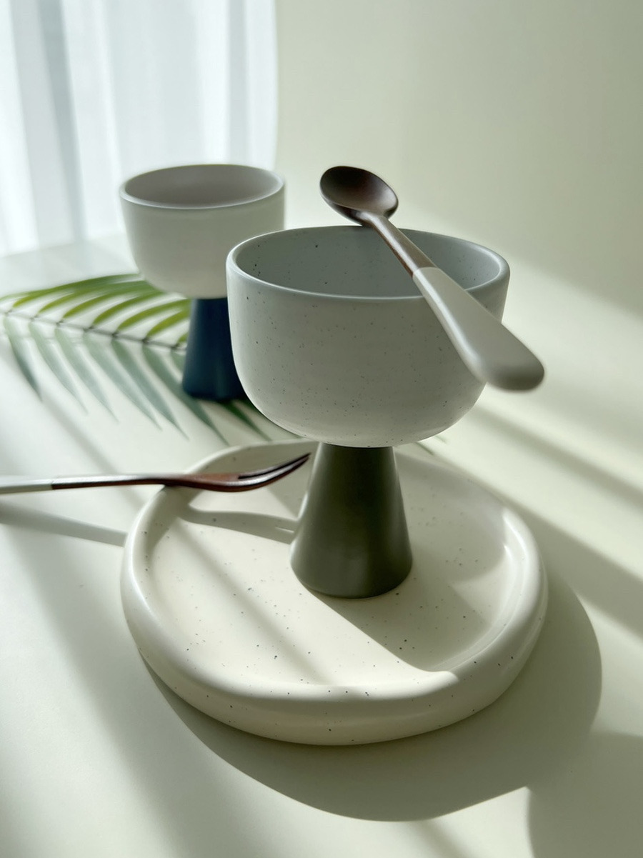 다양한 디저트류를 담기 예쁜 도자기 굽볼이네요.