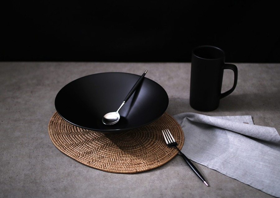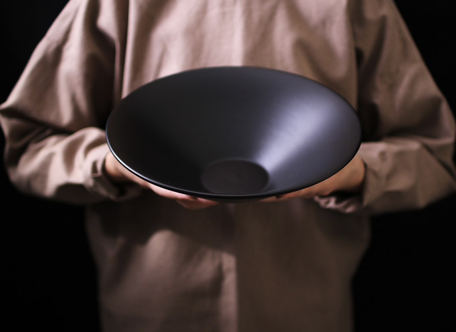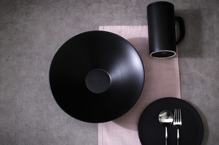 묵직한 느낌의 블랙 도자기 면기로