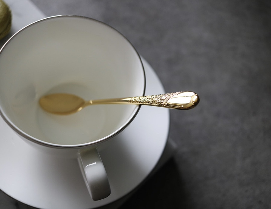 엔틱한 디자인의 골드컬러 카페 티스푼입니다.