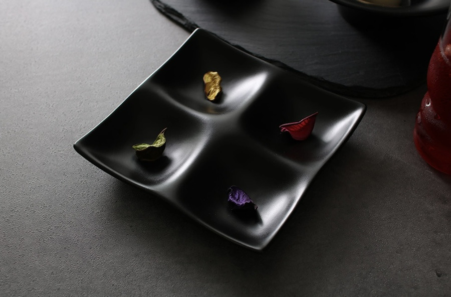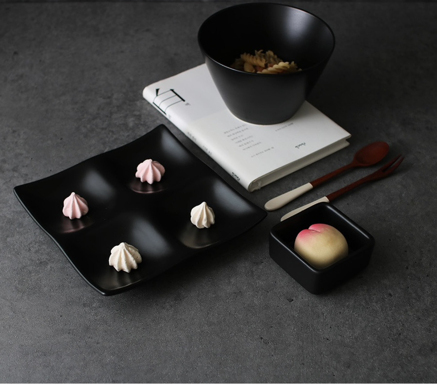정갈하게 올려놓기 좋은 사각 반찬그릇이에요.