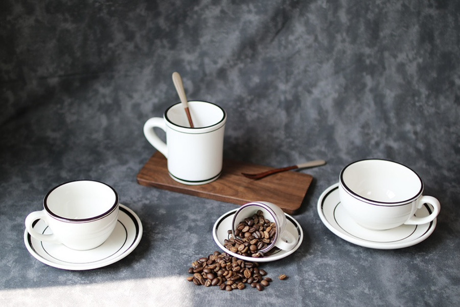 라떼잔 이외에도 머그컵, 에스프레소잔, 접시,