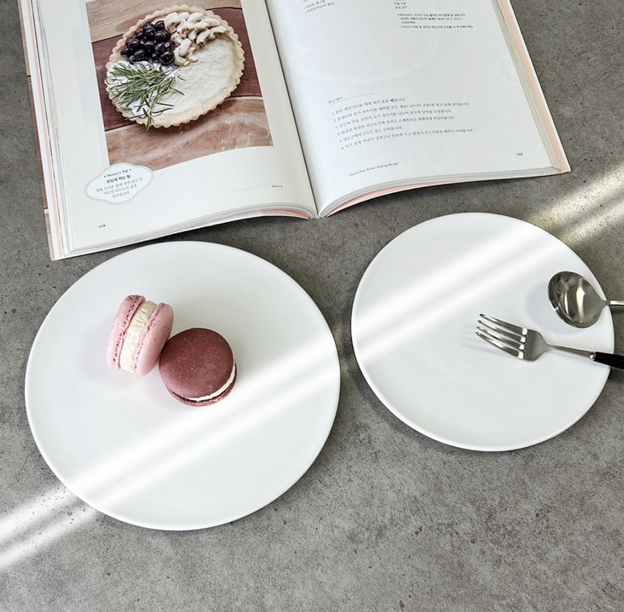 국내생산 도자기 소재의 화이트 원형접시로