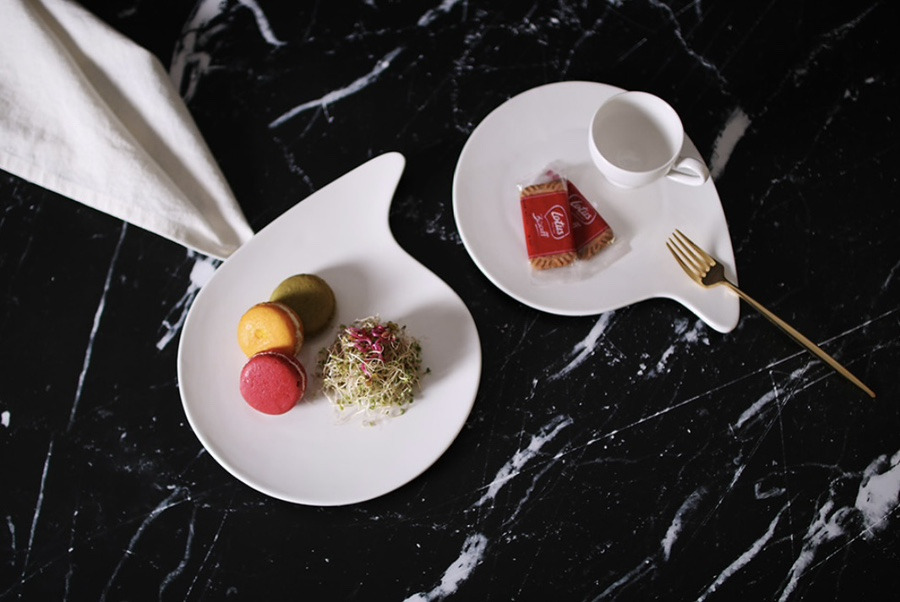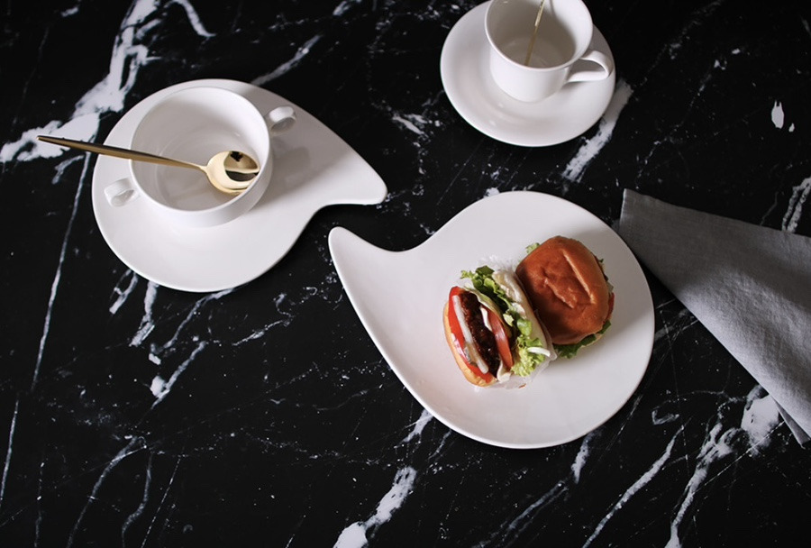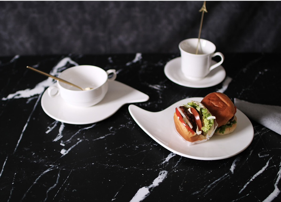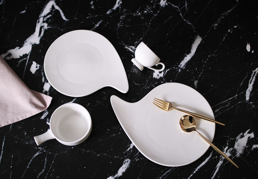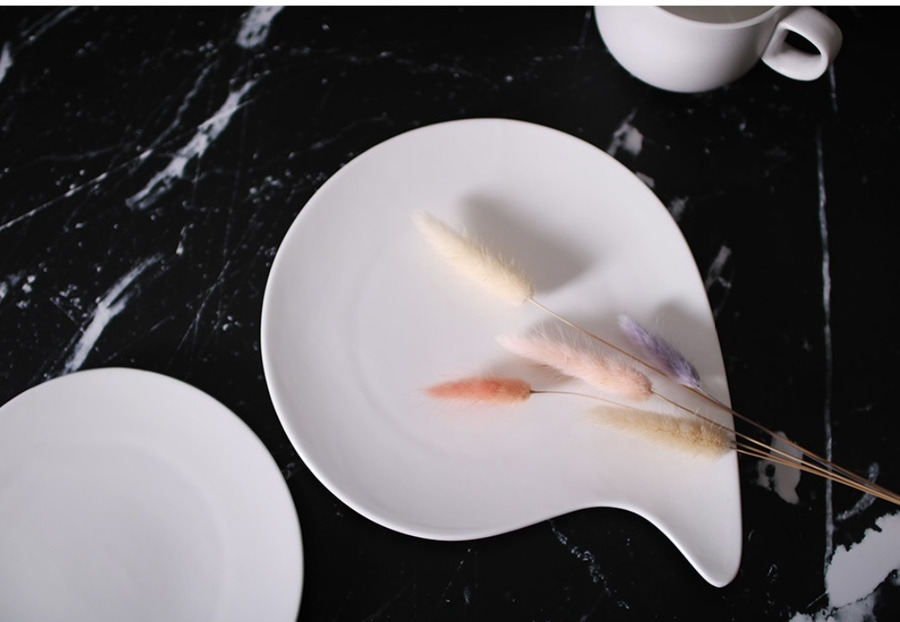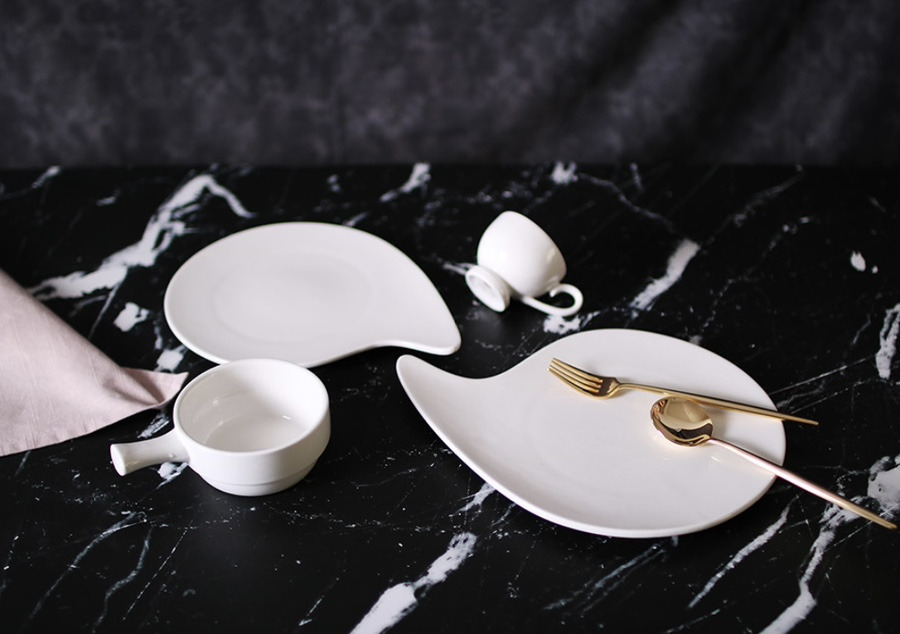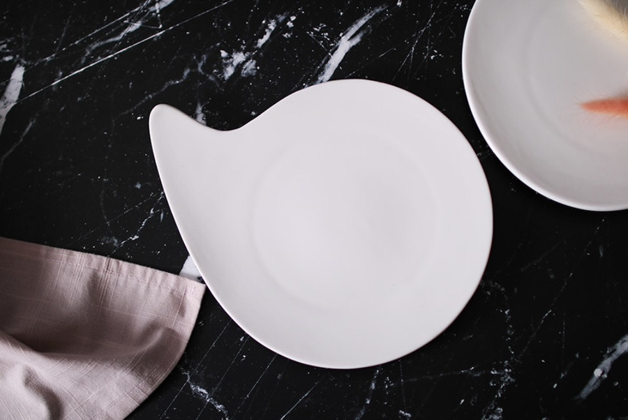 독특한 쉐입의 화이트 플랫 카페접시입니다.