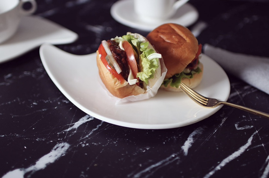 마카롱, 햄버거, 샌드위치 등의 요리를