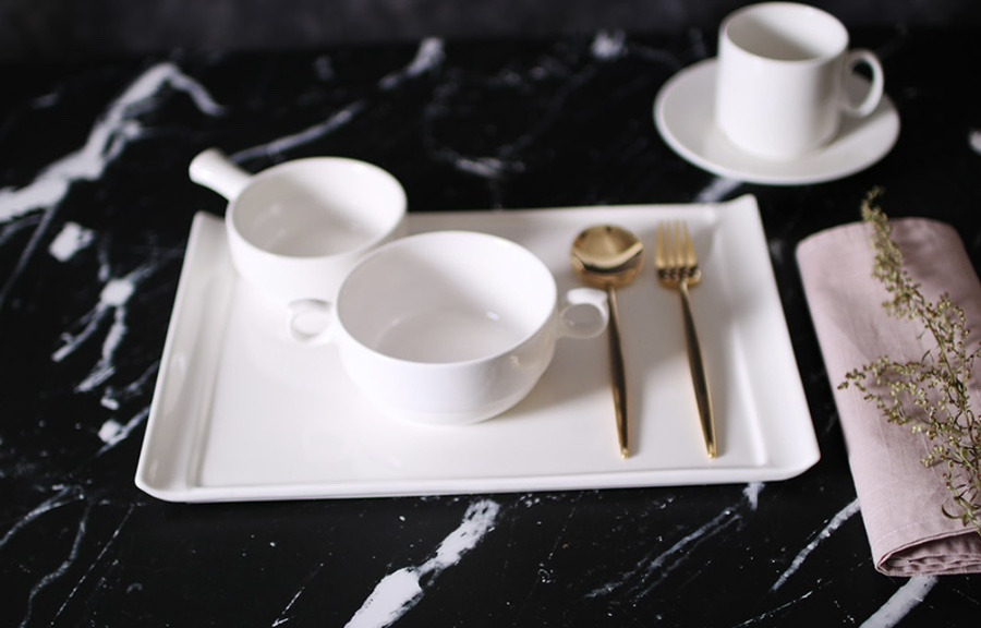 퓨어 화이트 플레이팅 직사각 접시 2 size
