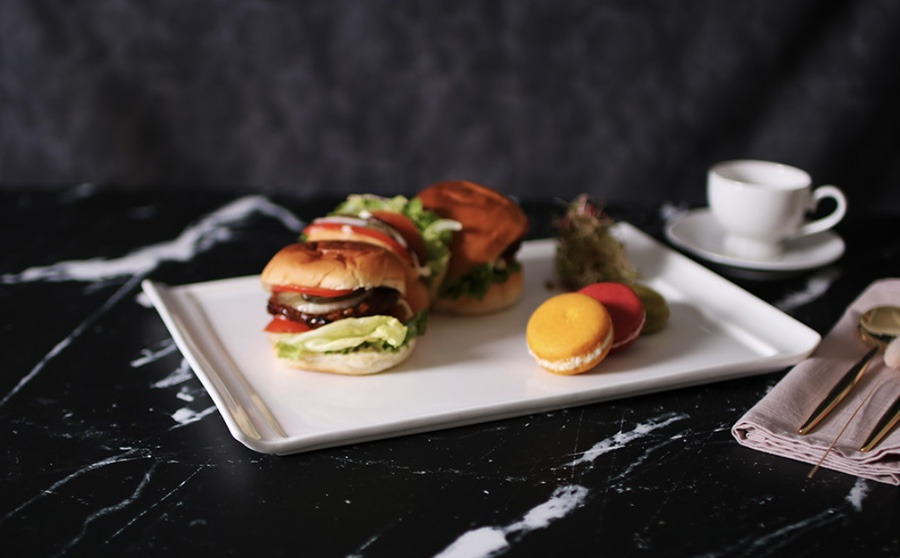 스테이크, 햄버거, 오픈샌드위치 등 다양한 음식들을
