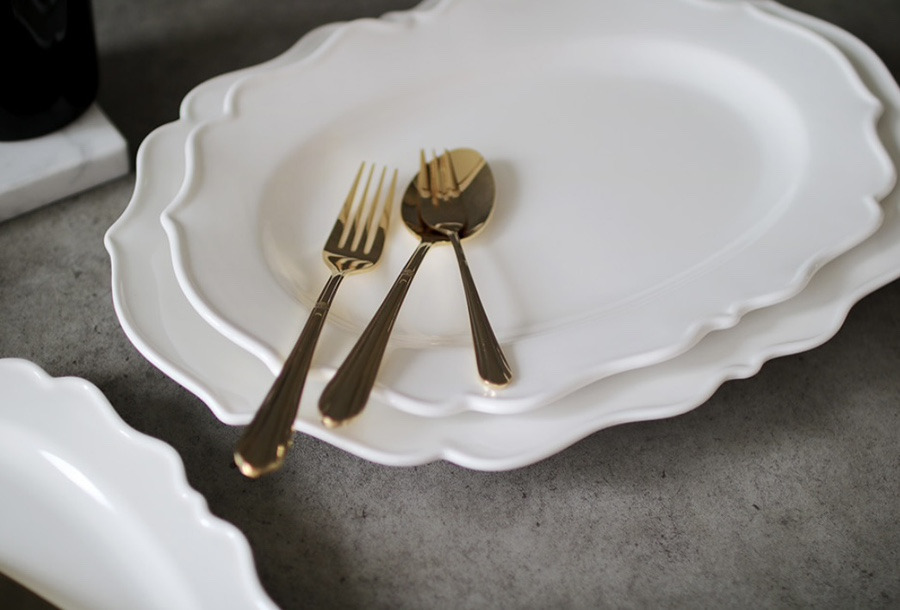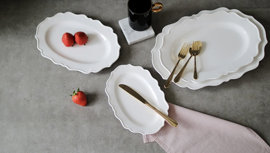 타원접시 이외에도 파스타접시, 원형접시, 직사각접시 등 다양한 시리즈들이 있어 테이블 위 감각적인