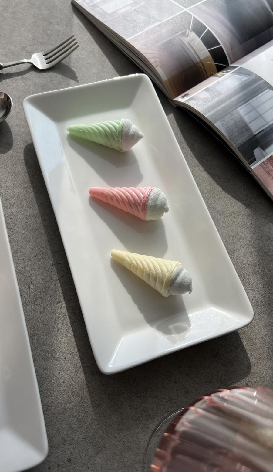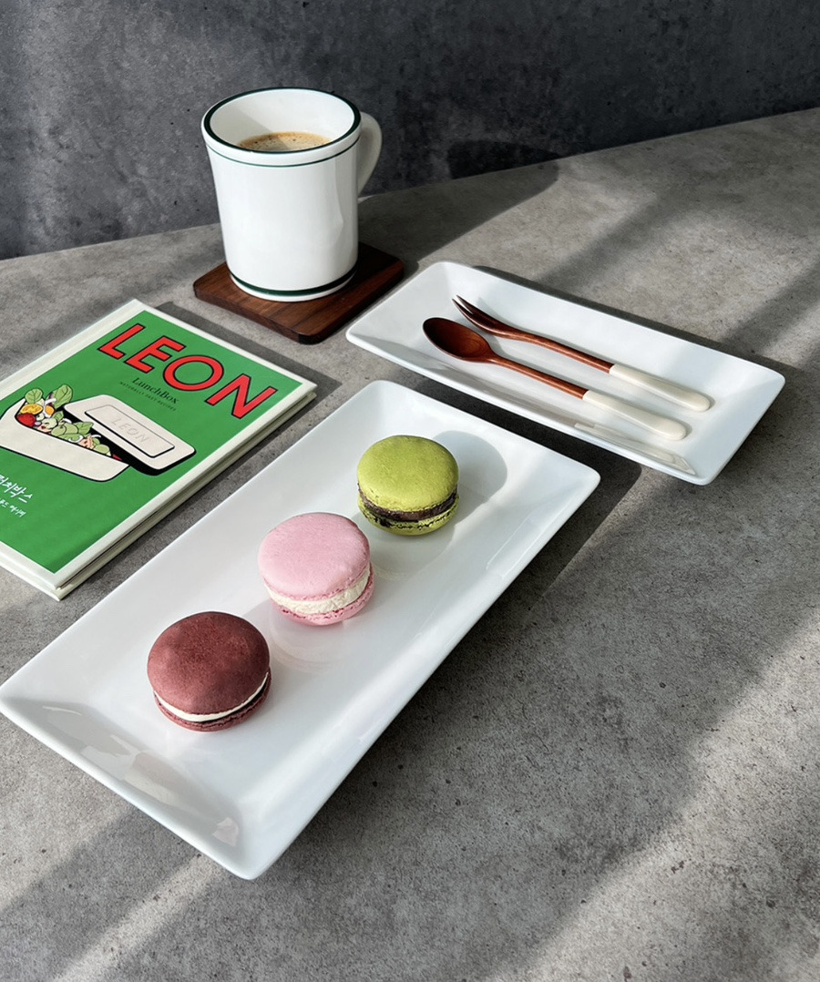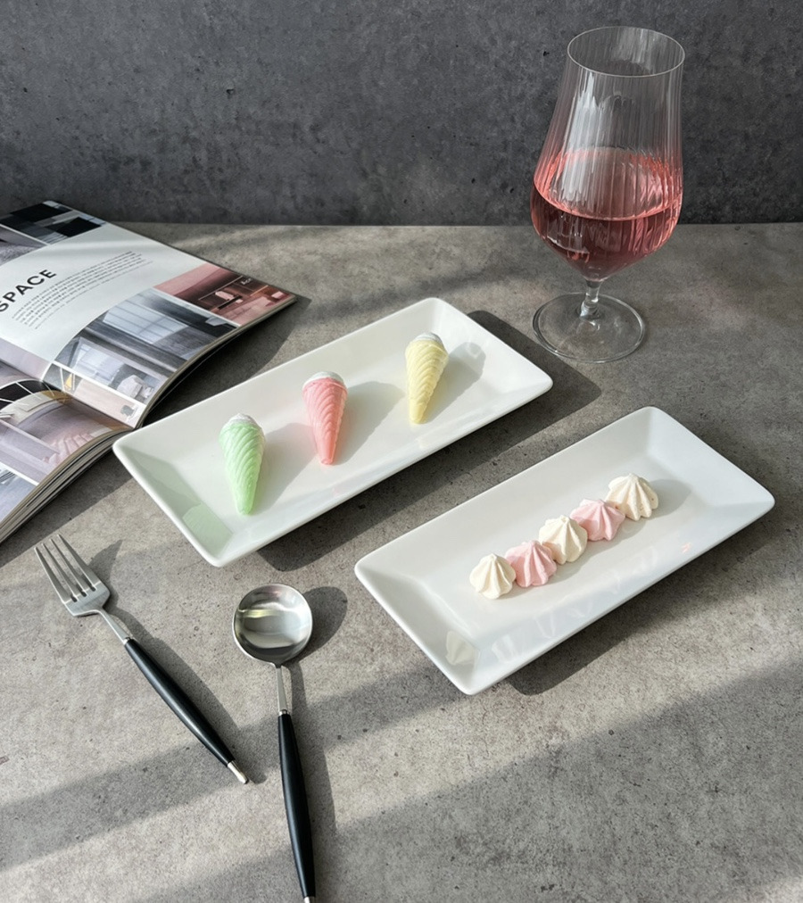 음식을 돋보이게 해주는 직사각 도자기접시로